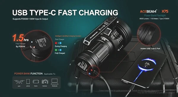 AceBeam X75, sıradan bir el feneri arayanlara göre fazla güçlü olabilir ama ihtiyacı olanlar için piyasadaki en etkileyici el fenerlerinden biri. 80.000 lümenlik ışık gücü, sağlam yapısı ve profesyonel hissiyle beklentiyi fazlasıyla karşılıyor.